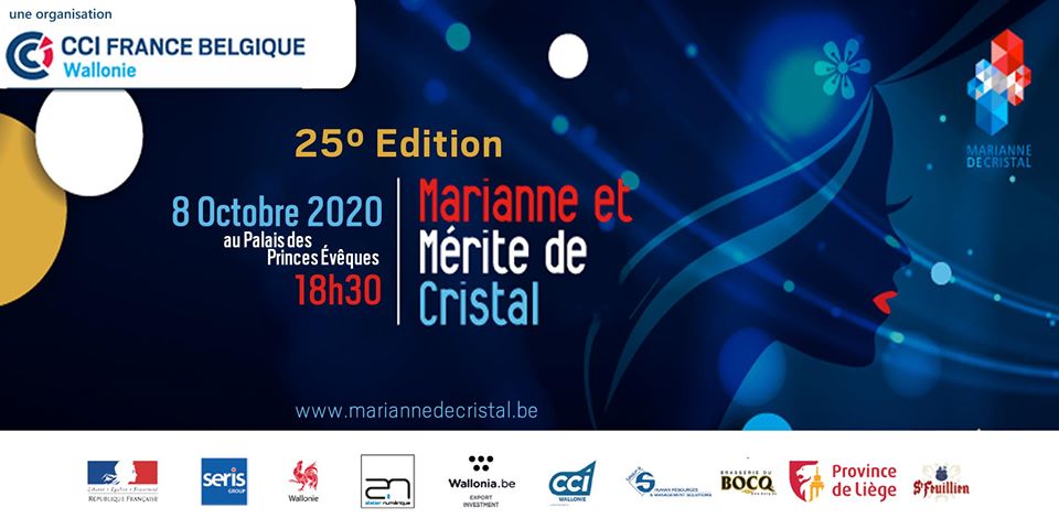 Rendez-vous le 8 octobre 2020 au Palais des Prince-Évêques de Liège pour la 25 ème édition de la soirée de Gala « Marianne de Cristal » organisée par la CCI FRANCE BELGIQUE – Wallonie.